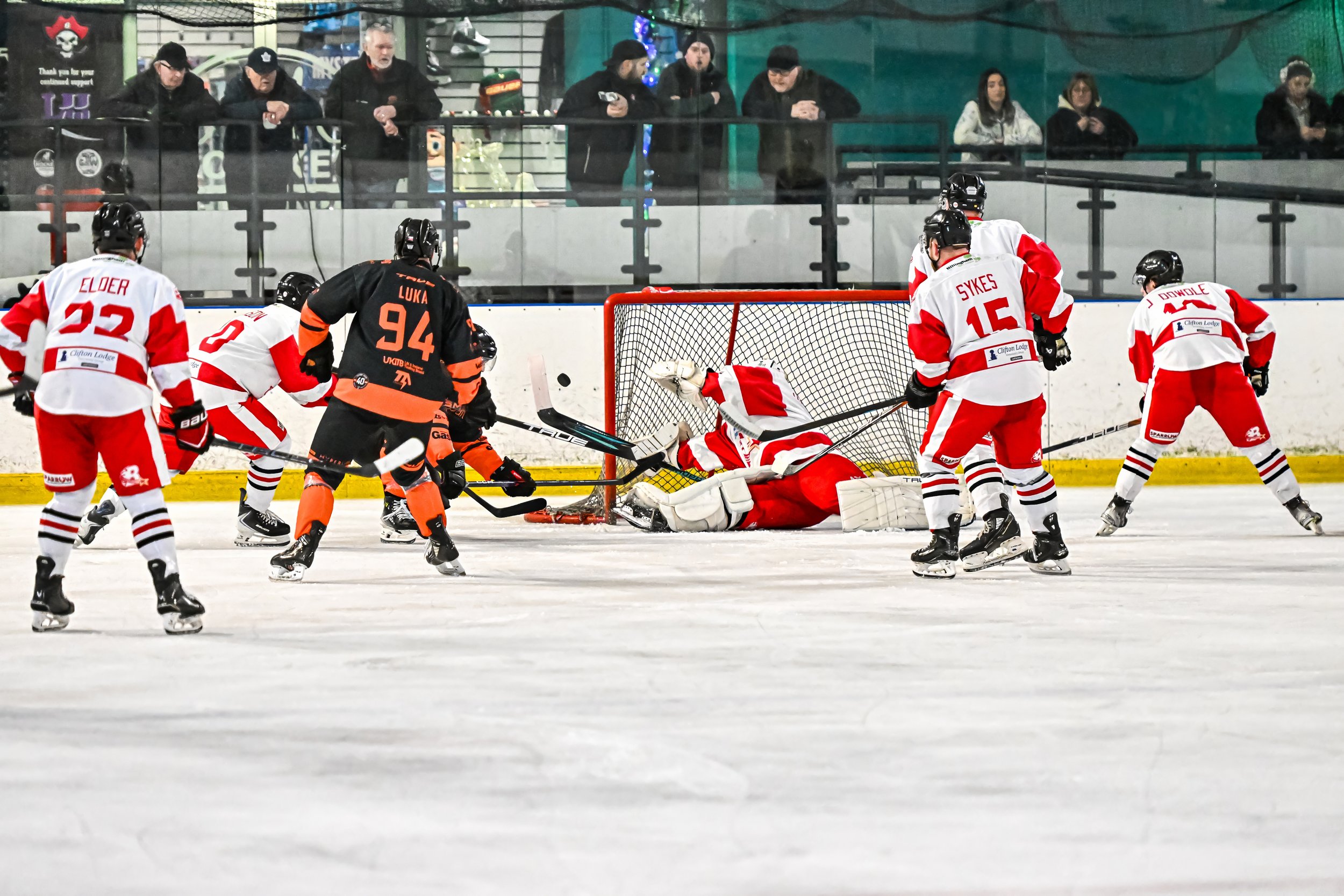 A much different game unfolded the following evening as Telford Tigers 2 arrived on Teesside needing a single point to qualify for the Moralee Cup semifinals. The home side were dealt a blow before face off when it was confirmed that the upper body injury suffered by Rolands Gritāns the previous evening would keep him out, meaning lines had to be changed accordingly. Tigers physical game in the first period put the officials in the spotlight, but just a single minor was handed out to both teams despite several incidents that could and should have been penalised. In amongst the battle, the teams also traded goals - Sykes collected the puck all alone on the blue line on 16 minutes and rounded netminder Zack Brown to open the scoring before Jason Silverthorn squeezed the puck under Jacob Hammond’s stick on the power play in the 19th minute.