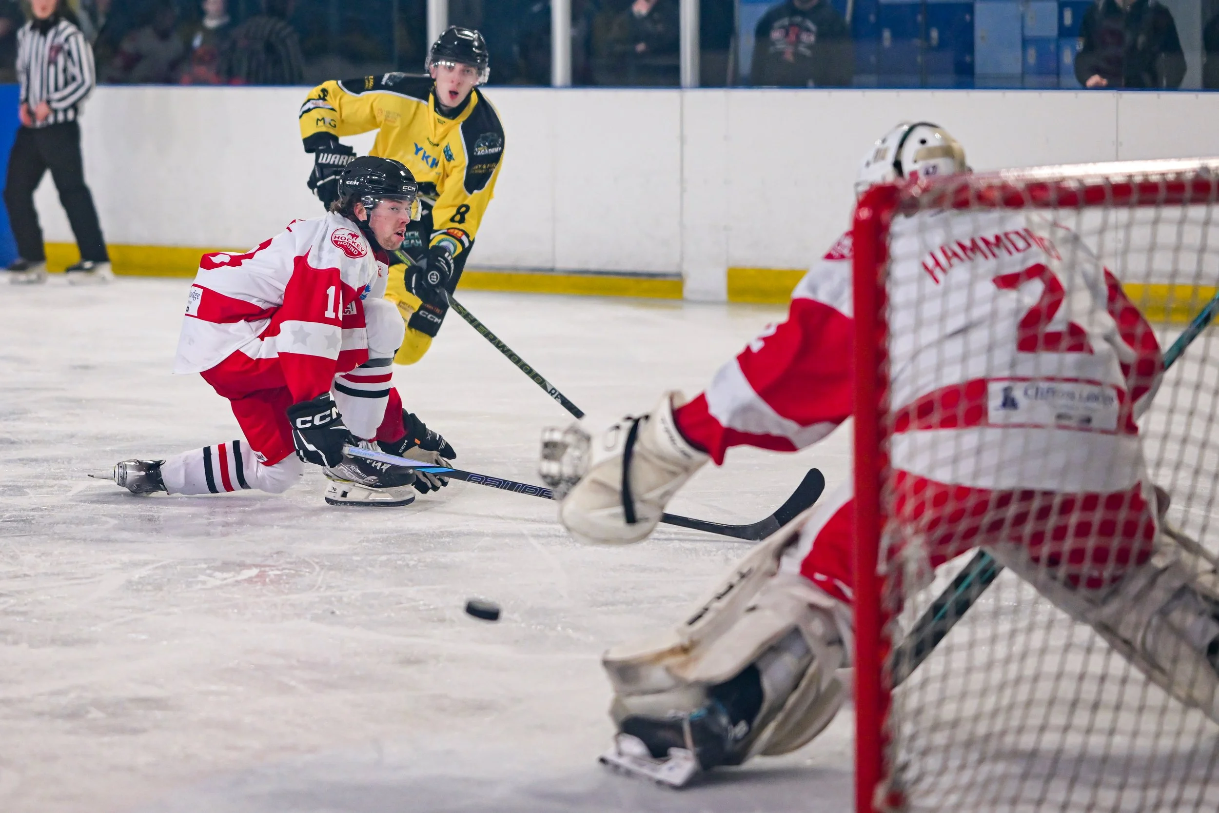 Yet more problems for Billingham in the 47th minute as the in-form Moss collided with the boards and left the ice with a nasty-looking lower body injury. Galloway was moved back up front to cover, and he duly got himself amongst the goals when he pounced on the puck out front and fired home in the 52nd minute. Ethan McLaughlin forced home past Tessadri’s skate in the 55th minute, but there was late heartbreak for netminder Jacob Hammond when Andrew Hopkins skipped clear and stayed clear of the oncoming defenceman to break his shutout with just 37 seconds remaining, final score 6-1.