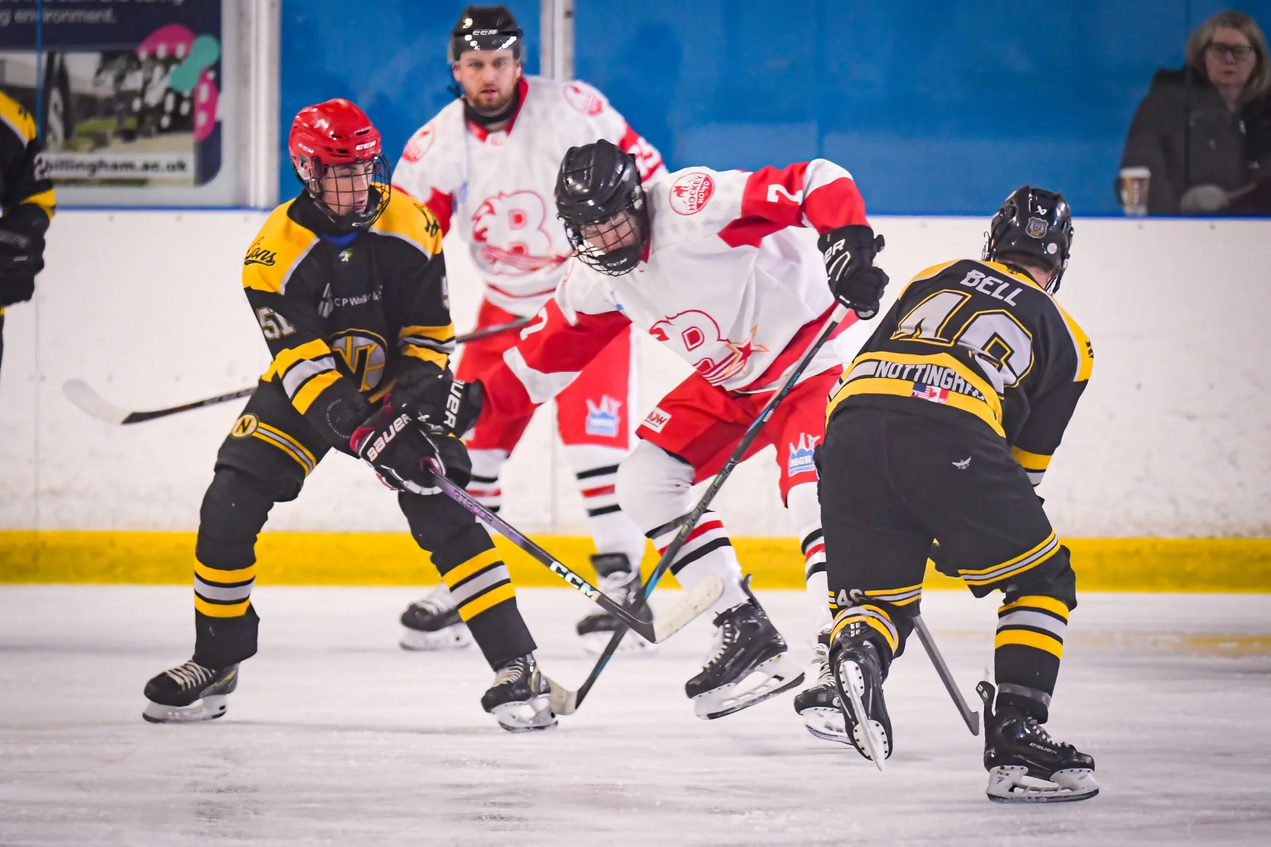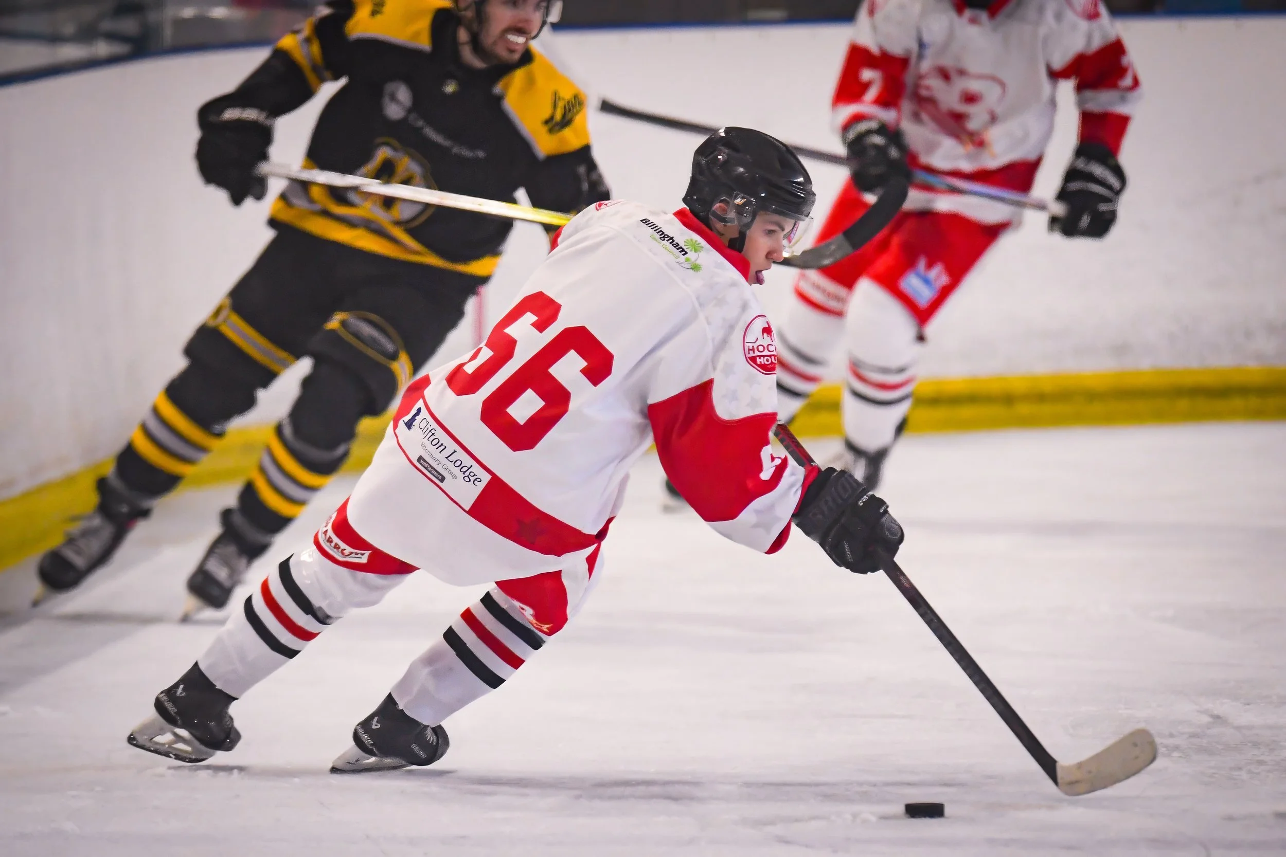 The third period saw the home side turn on the style and finally get back to the attacking hockey that has made them so irresistible for the past two seasons. Brown secured his hat trick in the 42nd minute, but the hosts had to wait another ten minutes before Lucas Dowdle slotted home a rebound from an almost impossible angle. Sykes doubled his tally with a power play marker in the 53rd minute, then two minutes later Darren Stattersfield got the nod after an unfortunate ricochet saw the puck slide between Isaac Ballinger’s pads. Alex Preston finally got the goal his offensive play deserved when he beat Ballinger on the breakaway in the 58th minute to make the final score 10-2.